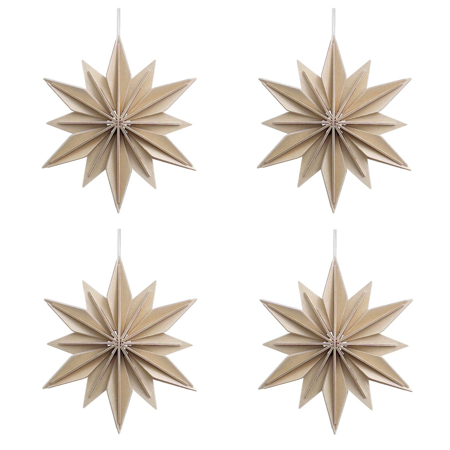 3D Deko-Stern 10 cm, natur- 4er Set