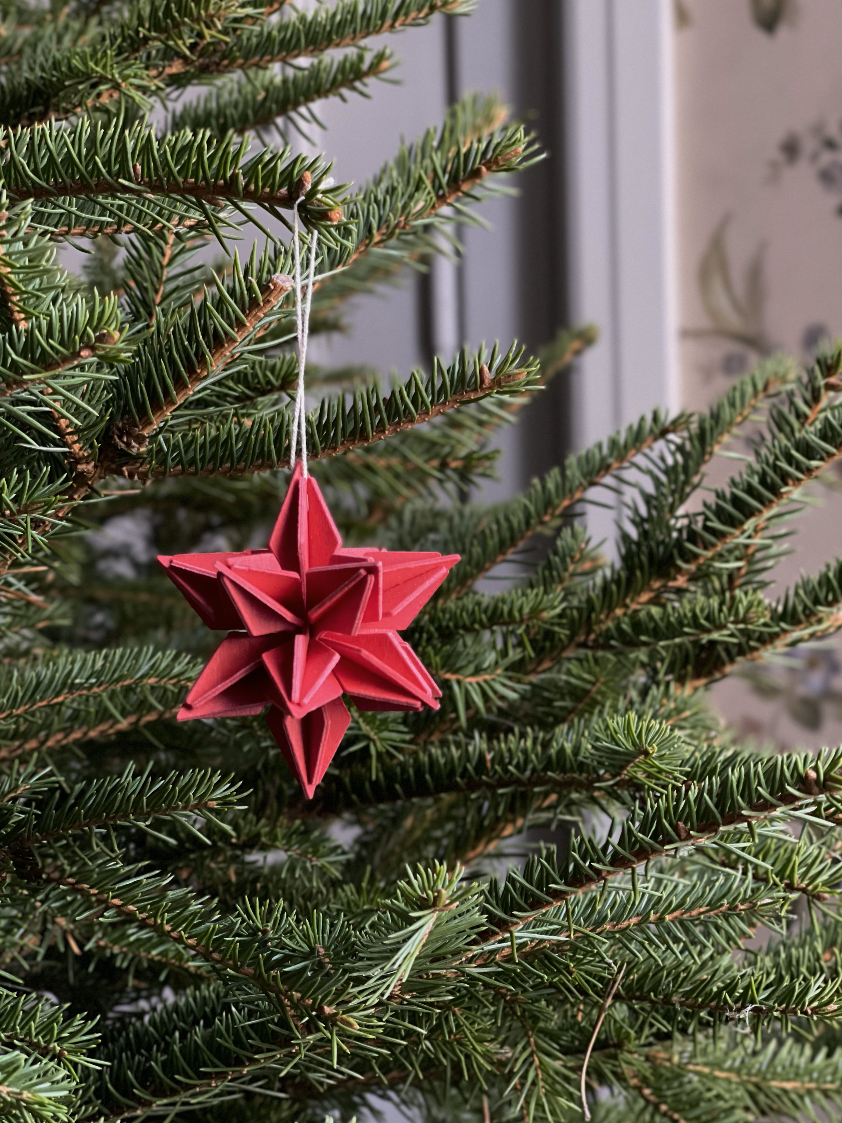 Schöner ornamentaler, dreidimensionaler Stern aus Holz zum Selbermachen in leuchtendem Rot. Sieht sowohl am Weihnachtsbaum auch als Tischdeko toll aus. Umweltfreundlich.